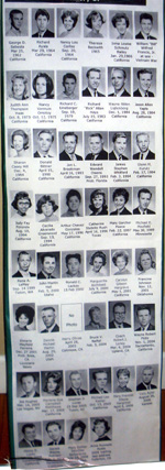 | The 45-year reunion was held on October 2nd and 3rd, 2009 in Ontario and Upland, California. Several classmates said this was the best reunion yet and are looking forward to attending the 50-year reunion. Everyone is so thankful and excited that we made it another five years and to see so many of our friends once again.   The Friday night get-together was held at the host hotel, Best Western Inn Suits, on Shelby St. in Ontario from 7:00 PM to Midnight. It was in this informal setting that 36 of our classmates with an additional 13 spouses and dates joined in visiting, catching up, and reminiscing.  Helpful in bringing the past to the present was the slide show presentation that continued throughout the night. The slideshow contained photos from our 1964 school yearbook, past reunions, and then and now photos of several of our classmates.  Many of us have found that attending the Friday night get-together helps in getting a jumpstart and breaks the ice in preparation for our Saturday night reunion event.  The big event on Saturday night was held at the Upland Hills Country Club on 16th Street near Campus in Upland from 6:00 PM to midnight. This was in a beautiful setting with where 80 of us enjoyed a wonderful dinner, fun dancing to great music from our high school era, and some terrific door prizes.  Door prizes included some Upland teddy bears, T-shirts, an "Upland Pride" Citrus Label and other Upland memorabilia, a gift basket from Maui, $100 Visa gift card, an astrology reading worth $110, a beautiful handmade quilt, and 5 nights in a condo on the Hawaiian island of Maui.  There are a few copies of the reunion book and DVD. If interested in receiving a copy of one or both of these items, please contact us.    |