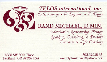 Rand Michael, Associate Professor of Marriage and Family Therapy at George Fox University, and Phyllis Michael, Associate Professor of Human Development and Family Studies, have been providing training, consultation, and clinical services internationally since 1987. In 1988, they founded TELOS international, inc., a non-profit, tax-exempt organization whose mission statement is as follows:
