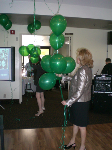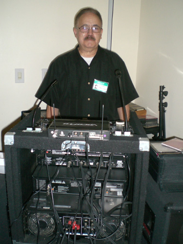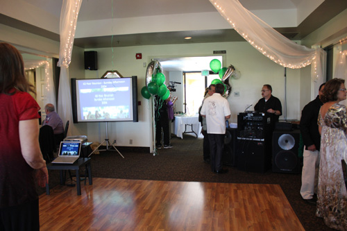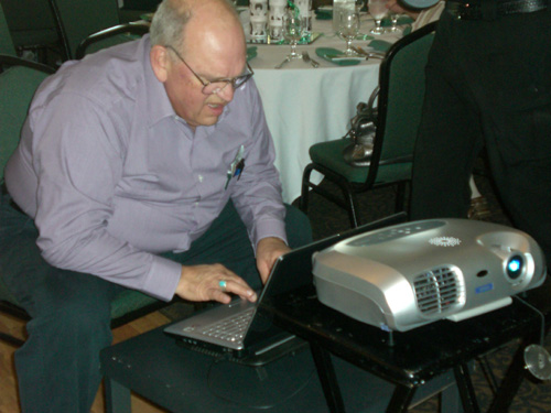Setting up the projector for the power point slideshow of the different class reunions through the years